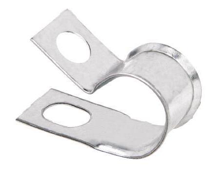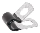 Flared edges around clamping loop help prevent wire or tube abrasion. Furnished open to allow the clip to be snapped over wiring or tube, then closed with the bolt at assembly. Contoured to minimize distortion during clamping.