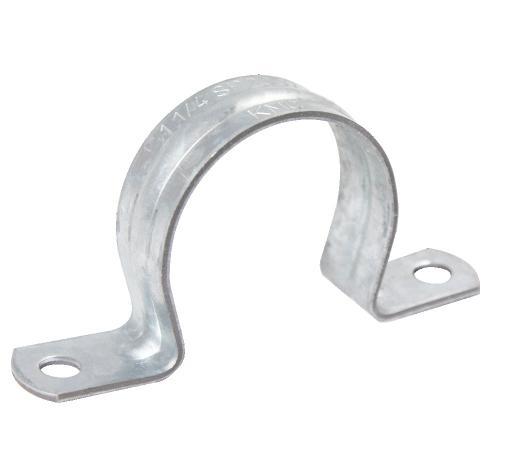 Conduit retaining strap helps secure conduit to a wall or structure. Inward angle design holds clamp in place for easier installation. Ribbed middle adds strength. Stamped with KMC part # and size for easy reference.