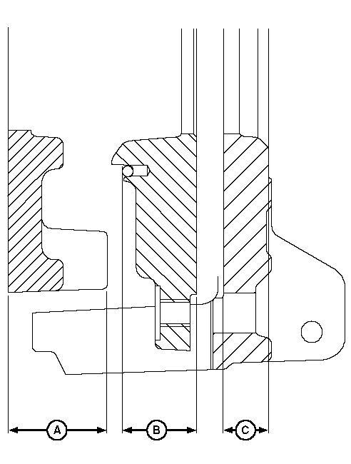 18. Measure the thickness of pressure plates at dimensions (A, B and C). Replace parts that are not within specification.