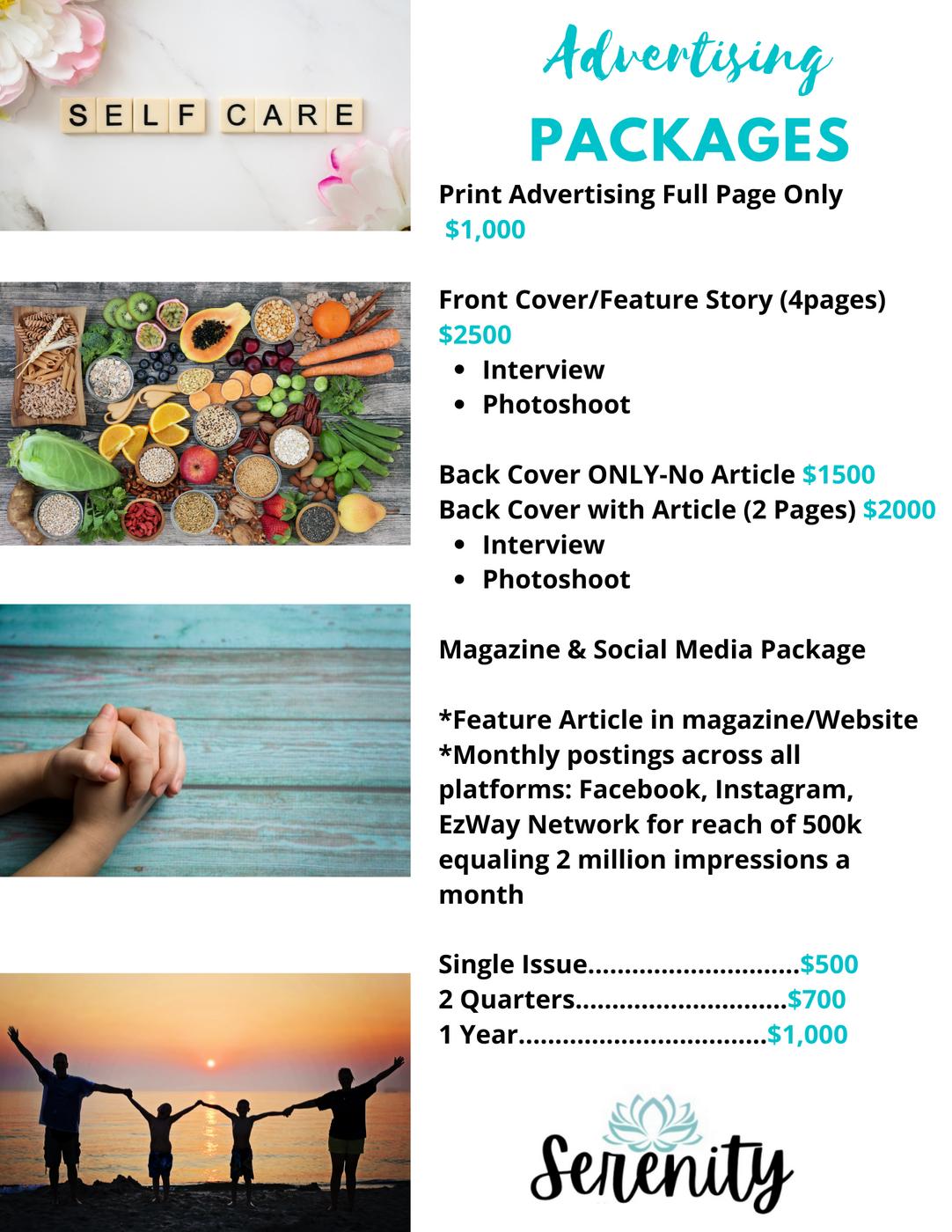 For more advertising info email: sales@serenitywellnessmagazine.com