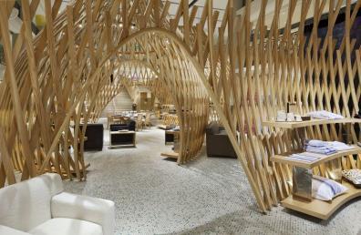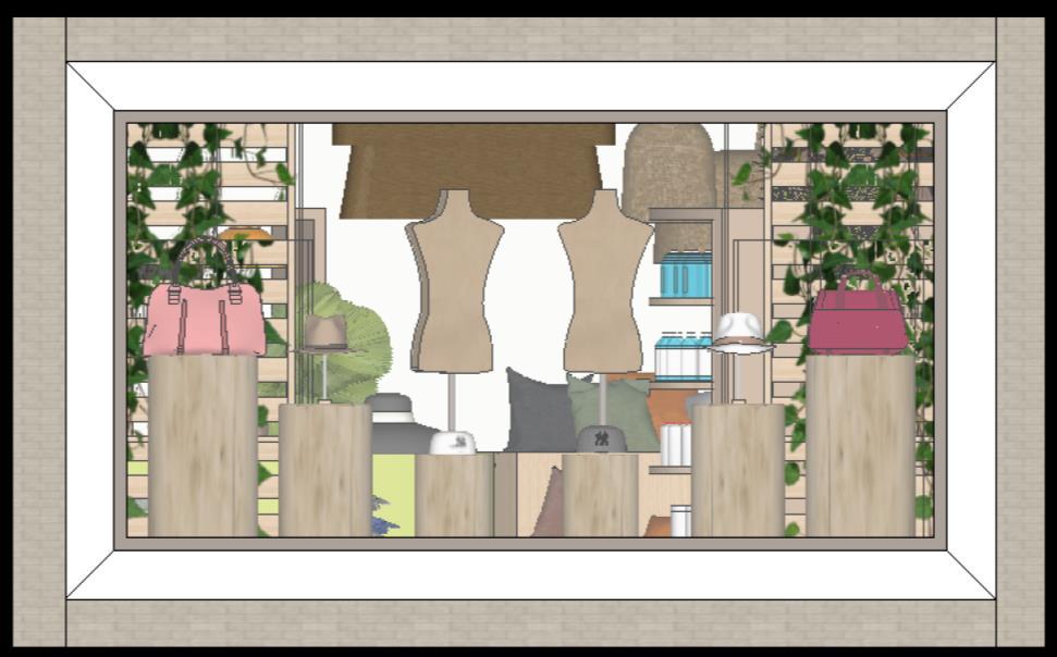 Escaparate para productos del hogar simulando un showroom visible tanto exteriormente como interiormente.