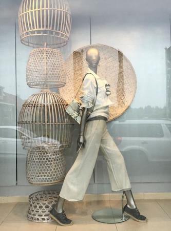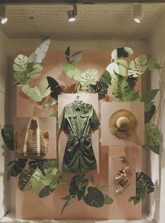 Escaparate de medio fondo logrando diferencia el espacio interior del escaparate y los productos, que se cambian de formar regular.
