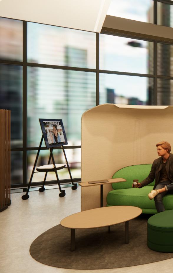 The NEXT Office space closely examines current workplace design and offers an innovative solution to the new development of work from home and hybrid workplaces. The concept of Enveloping The Future embraces multiple working generations, elasticizes the hybrid workplace, and bridges people with nature