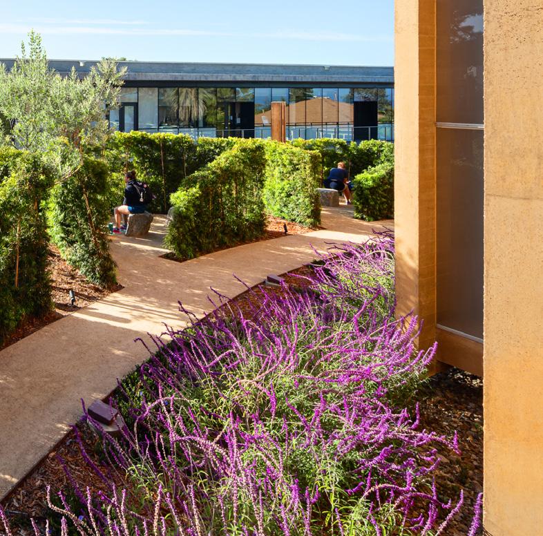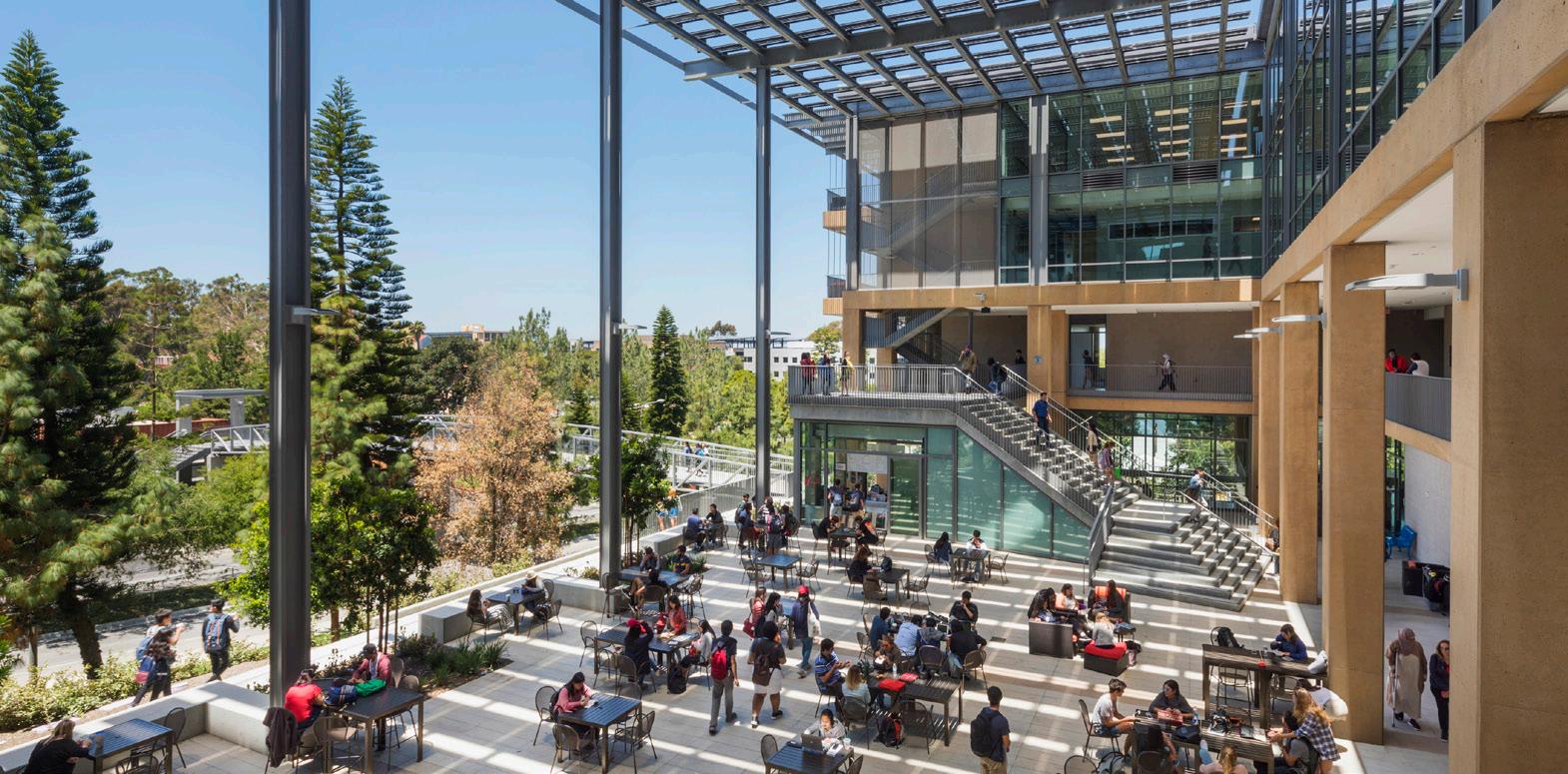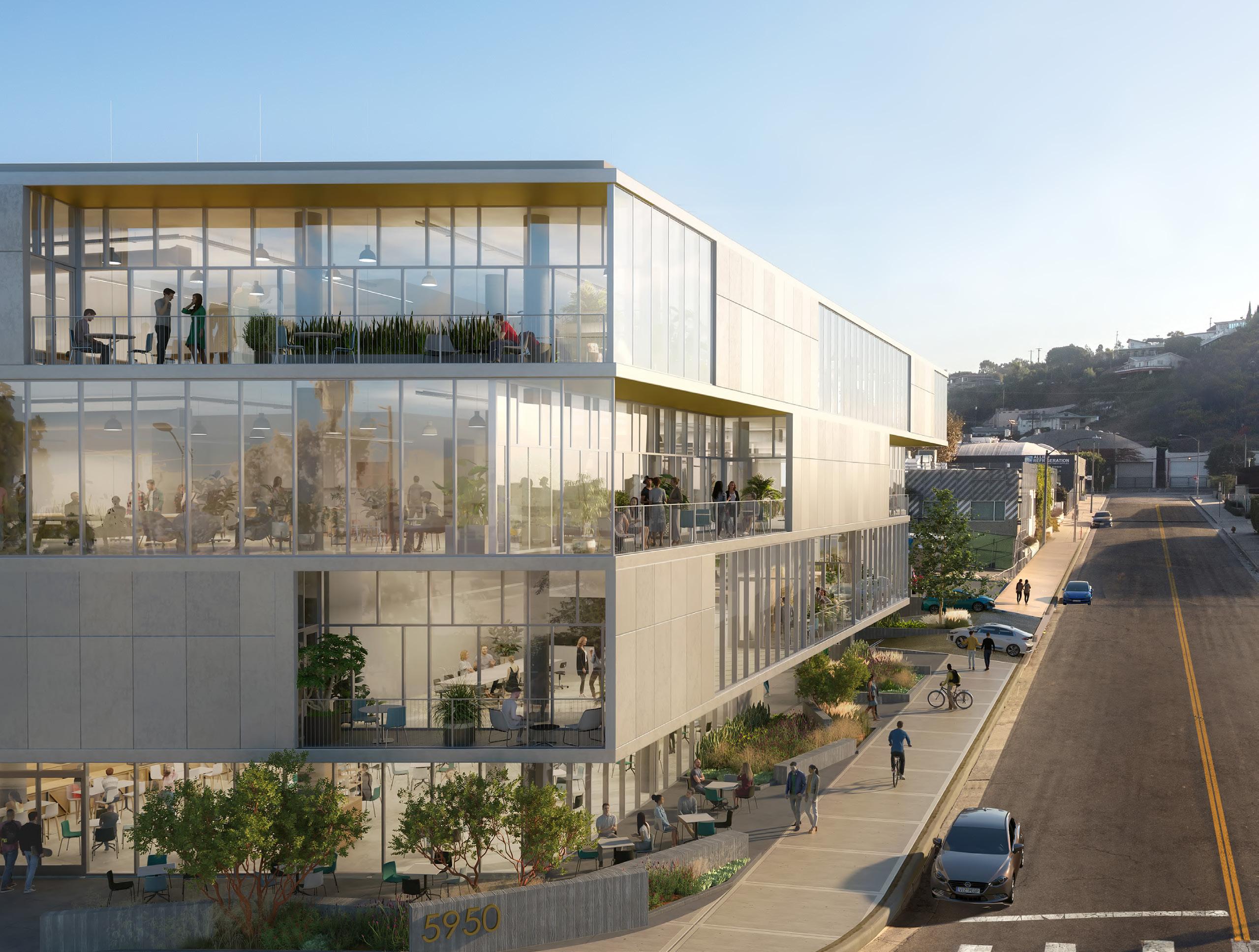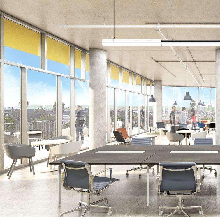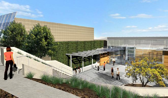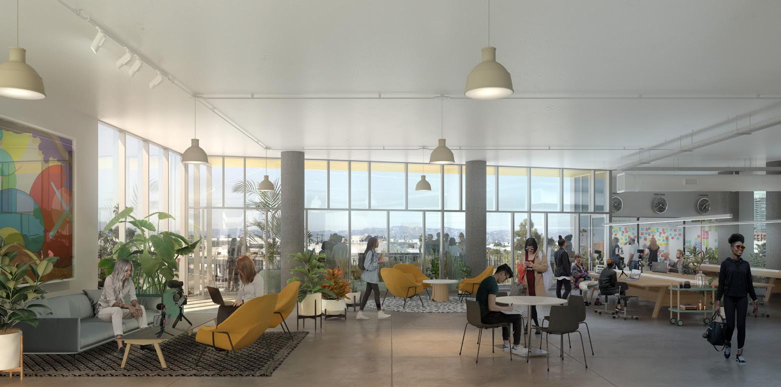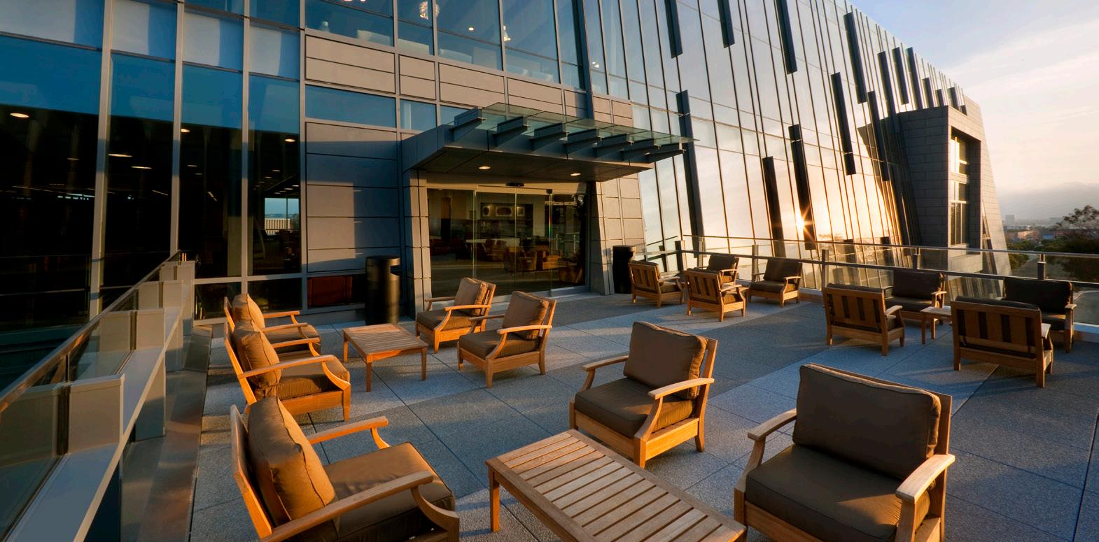These flexible terraces provide space for breakout meetings, social events, and larger gatherings. The orientation of the terraces takes advantage of the various views from the site: the Pacific Ocean to the west, the Hollywood Hills to the north and the Baldwin Hills Scenic Overlook to the south.
