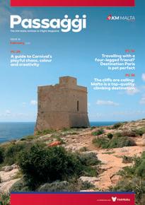 The publisher, authors and contributors reserve their rights with regards to copyright. No part of this magazine may be reproduced or copied by any means without the written consent of the publisher. Editorial features and opinions expressed in Passaġġi do not necessarily reflect the views of KM Malta Airlines, the publisher, or the editorial team. Both KM Malta Airlines and the publisher do not accept responsibility for commercial and advertising content. Although the authors and publisher have made every effort to ensure that the information in this magazine was correct before going to print, the author and publisher do not assume and hereby disclaim any liability to any party for any loss, damage, or disruption caused by errors or omissions, whether such errors or omissions result from negligence, accident, or any other cause. Special thanks to KM Malta Airlines and VisitMalta for the provision of photographic material. Printed in Malta by Gutenberg Press. All magazine rights are reserved by KM Malta Airlines.
