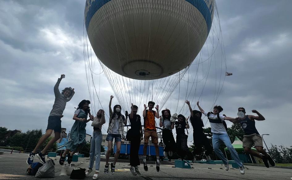 In Korea, there is a special culture at the University. All the students of the same major go on a 1 Night 2 Day trip together very early in the semester. Through this trip, We have a short break from our studies and get to know each other better. In the summer of 2022, we went on a trip to Suwon, a beautiful city 1 hour away from Seoul. At first, we boarded a helium balloon and looked down at Suwon city. It was very spacious and had a different feature compared to Seoul. We also watched a baseball game and it was really fun because we cheered together and could eat delicious food at the same time.