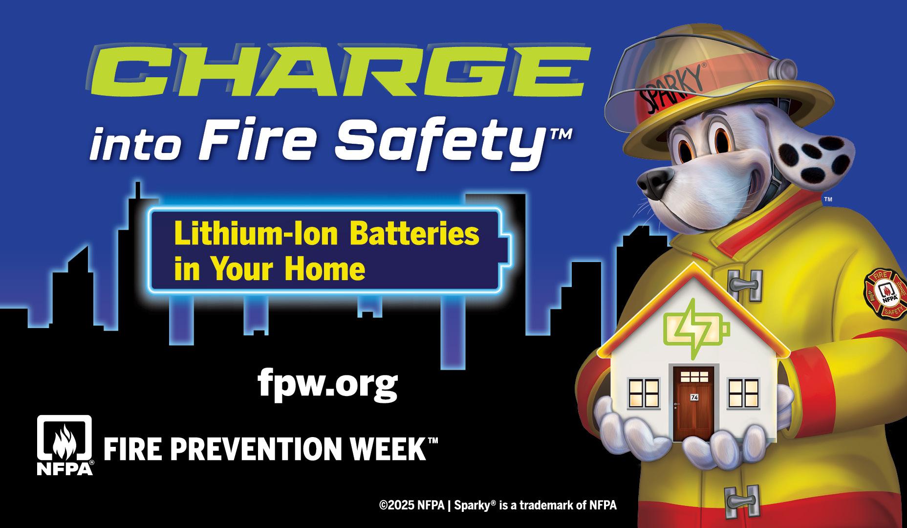 This year’s Fire Prevention Week™ (FPW™) campaign, “Charge into Fire Safety™: Lithium-Ion Batteries in Your Home,” works to educate everyone about using these batteries safely. The campaign stresses how important it is to BUY, CHARGE, and RECYCLE safely when it comes to lithium-ion batteries.