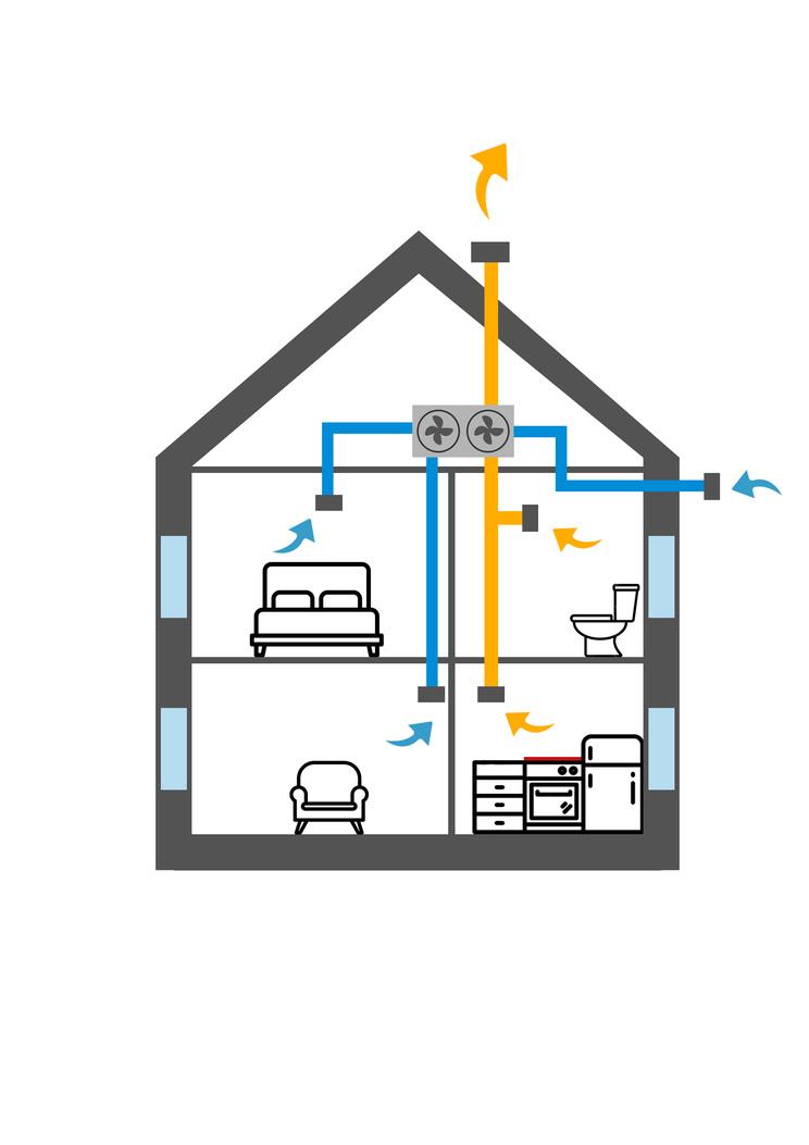 Aire viciado: se extrae siempre desde las habitaciones húmedas [cocina, baños, aseos]