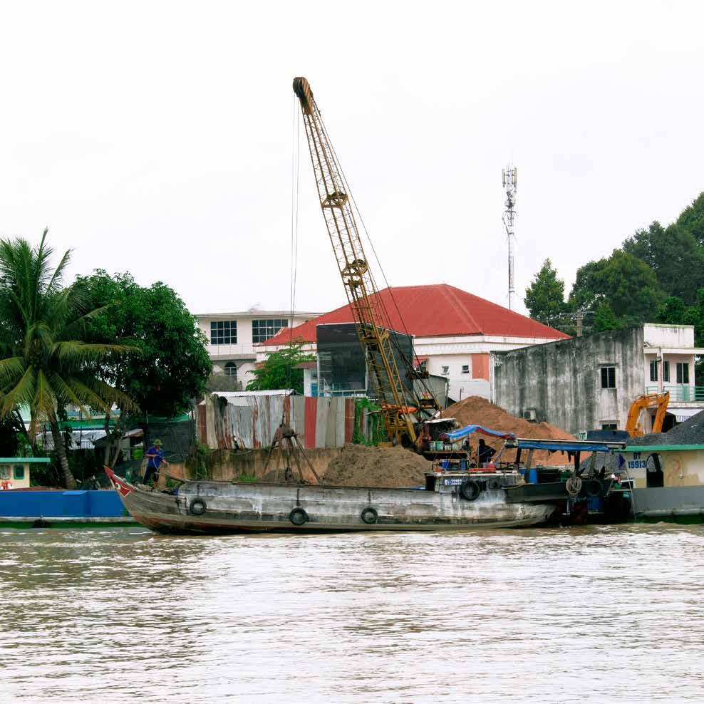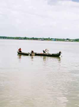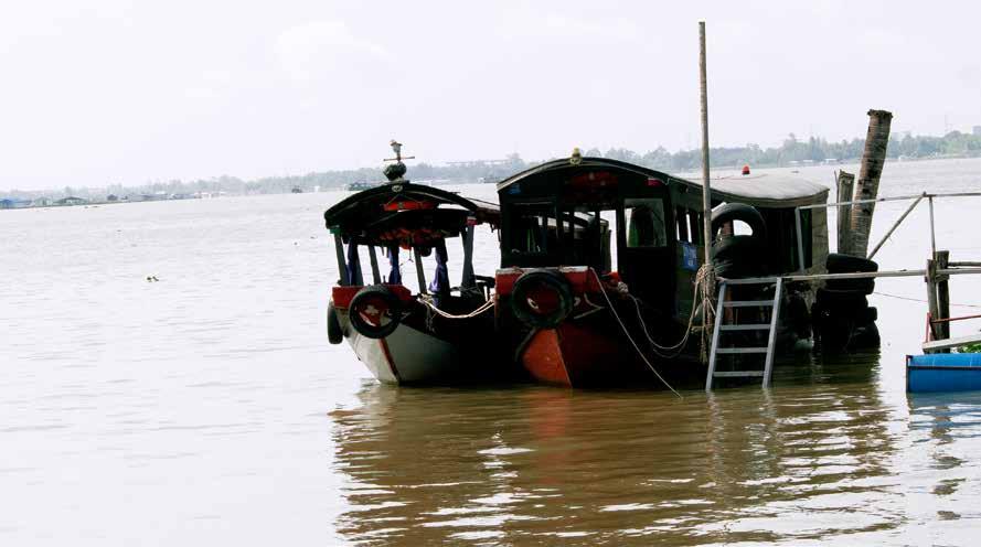 Trên sông, thuyền bè luôn qua lại không ngớt.