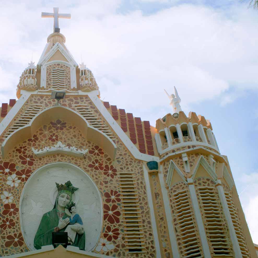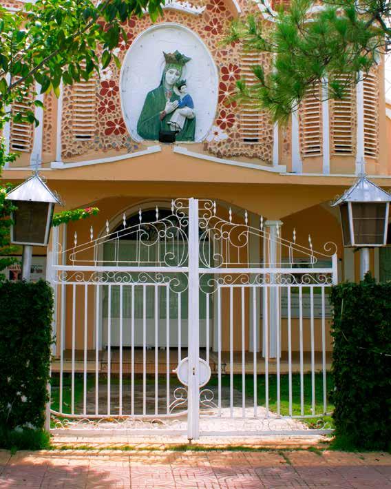 có nhiều tháng năm thăng trầm của lịch sử. Trên cổng vào có hình Đức Mẹ và Chúa theo