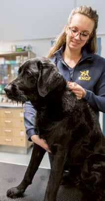 Er verblijven gemiddeld zo’n vijftig honden in de kennel en die worden buitenshuis getraind. Dat betekent dat ze van alles en nog wat mee de kennel in nemen. De infectiedruk met zo veel honden is dus hoog. Gelukkig kan KNGF rekenen op steun van leverancier Elanco, die allerlei producten sponsort. Zo worden alle honden in de kennel behandeld met het antivlooien- en tekenmiddel Advantix. De honden die op school zitten, krijgen het middel preventief maandelijks toegediend in de seizoenen dat vlooien en teken actief zijn.