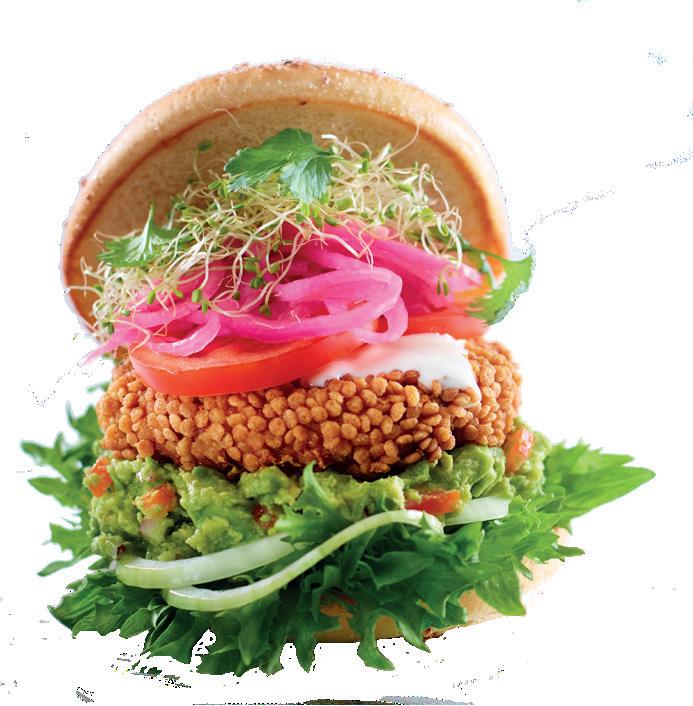 HOFF Liv Laga Vegetarburger MEXI får et ekstra løft med tilbehør som coleslaw, tzatziki og guacamole - i tillegg til sprø salater og gjerne spirer, tomat og agurk.