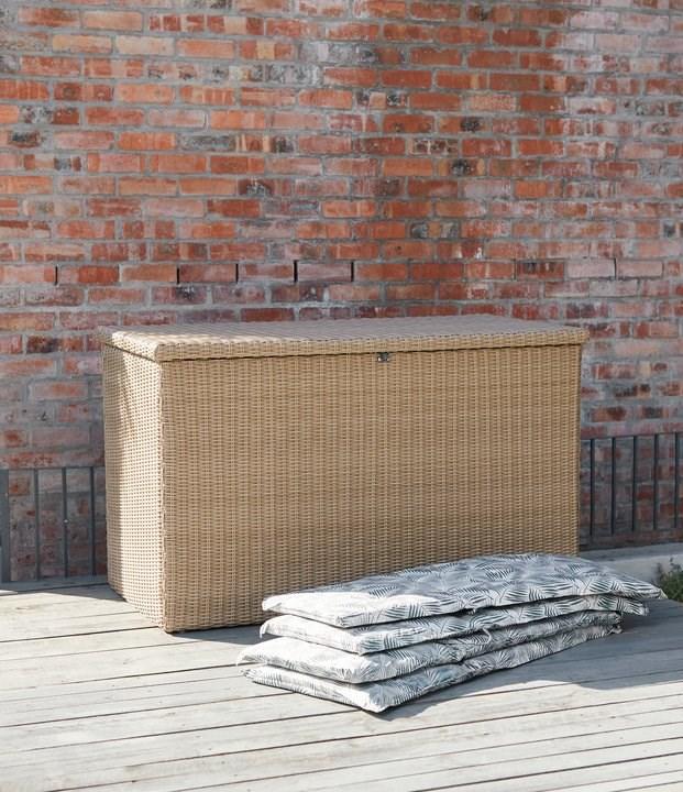 B145xH60xD69.Vanntett, UV-beskyttet plast. Med hydraulisk lokk og håndtak. Kan også brukes som benk. Frostsikker.