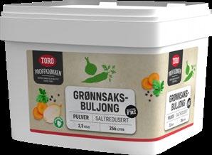 Grønnsaksbuljong Økonomi Kyllingbuljong Økonomi Oksebuljong Økonomi • 2x2,5 kg lettoppløselig pulver • Gir 312 liter ferdig utblandet buljong • Ny og mer miljøvennlig emballasje Grønnsaksfond • Blandingsforhold 1:50 gir 35 liter ferdig utblandet fond • Vegansk Tips!