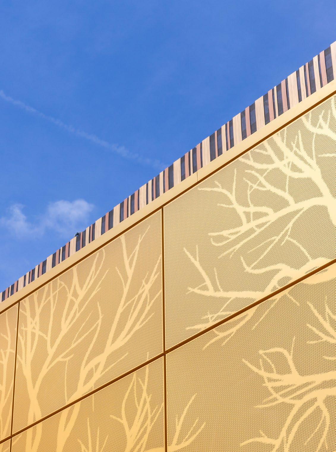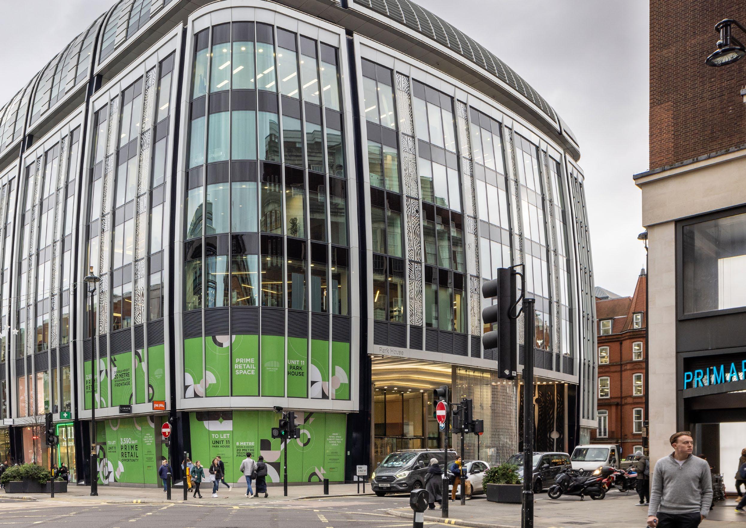 The scope included extensive strip out, structural alteration and provision of a substantial shell-and-core retail space over two floors; new internal walls, screed, wall and floor finishes; MEP alterations; glazed shopfronts; granite paving and steps; and soft landscaping. The key project feature was the bespoke external cladding including a unique Trespa panel design and backlit patterned, perforated aluminium cladding.