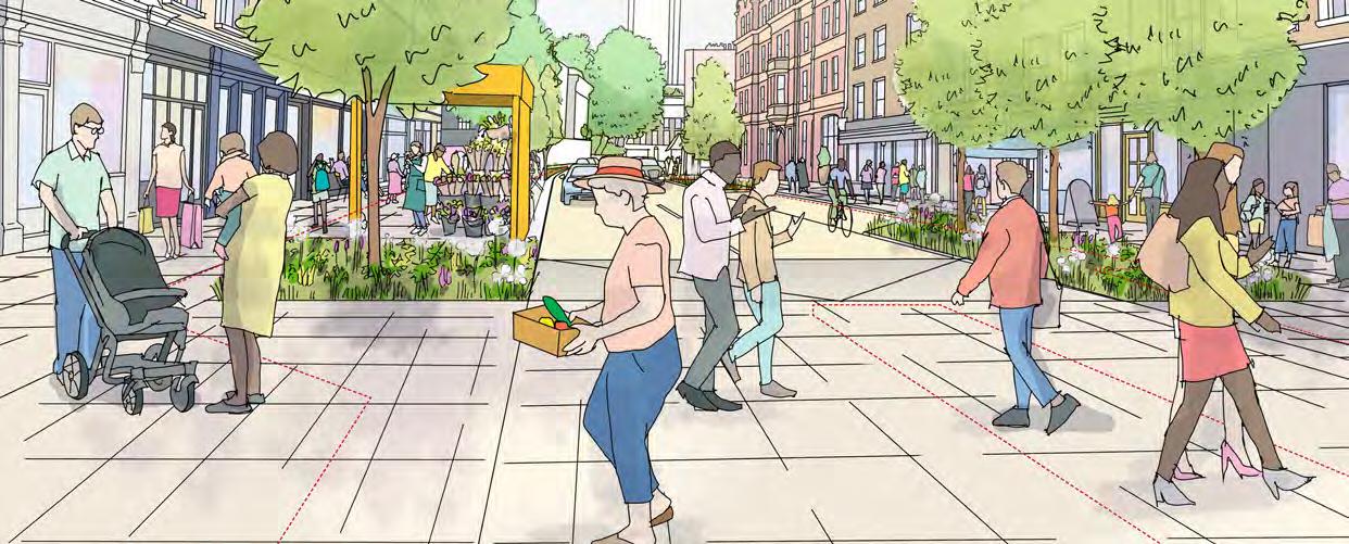 • Widened footways allow for improved spill-out space from adjacent businesses