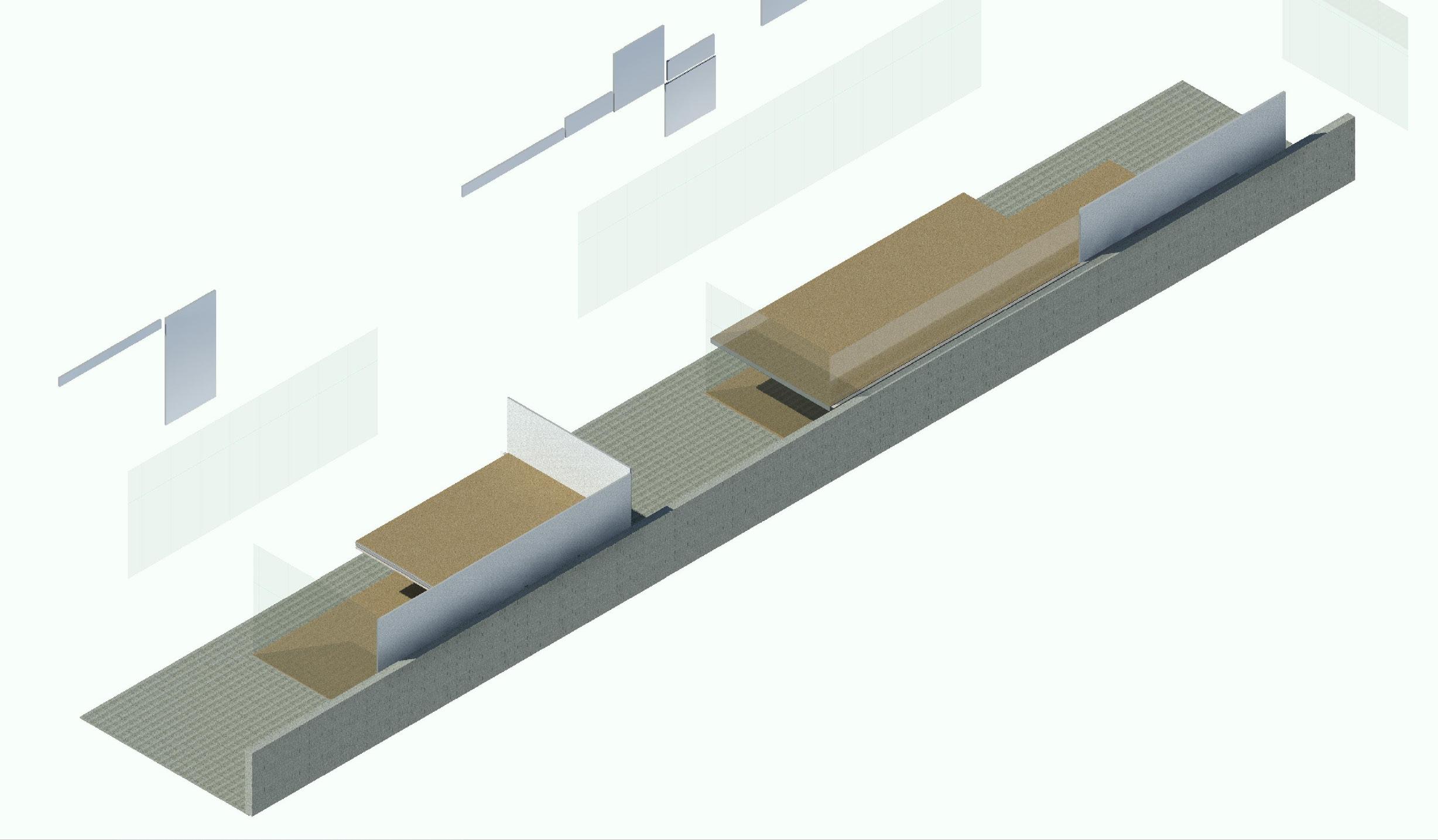 The 3D Revit model above showcases the relationship between the two buildings, placing the students slightly above Eames house, creating an inspiring view and a encouraging environment.