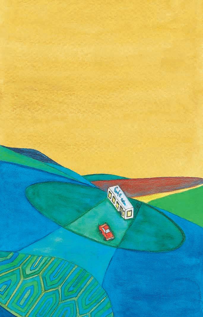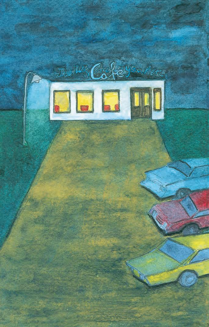 U lampy jsem sjel ze silnice na štěrkové parkoviště. V úžasu jsem si prohlížel malou bílou obdélníkovou budovu s modrým neonovým nápisem na střeše: „Kavárna otázek.“ Stejně tak mě překvapila i tři auta na parkovišti.