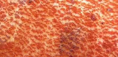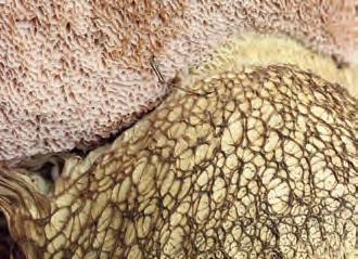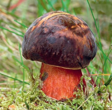 Povrch třeně hřibu kováře zdobí načervenalé vločky