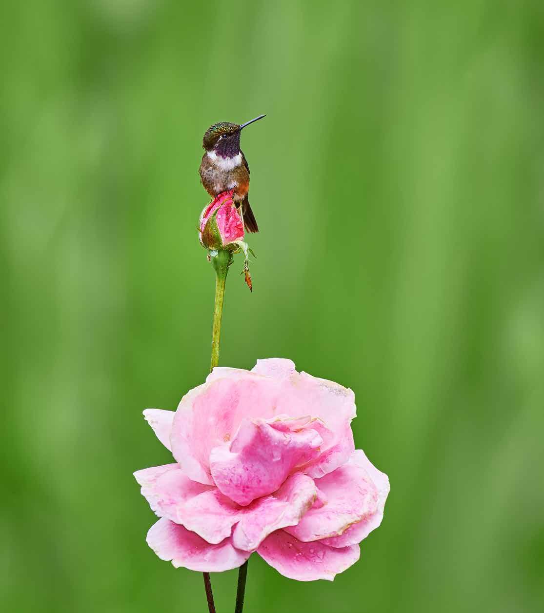 Když se tento kolibří sameček usadil na růži, přišlo mi žinantní na něj obrátit objektiv – přece jen cukrkandlová líbivost fotografie by měla mít jisté hranice… Podobně rozpačitá byla i reakce kolegů fotografů. Kolibř ale ani nemrkl a už zpozorněl při rachotu našich závěrek. Abychom to však neměli jen tak nutellově slaďounké, připomenu i stín této kýčovky, tedy temnou stránku ochrany přírody v Kolumbii. Jistě vás hned napadl negativní dopad půl století (!) kolumbijské občanské války, řádění guerill a brutality narcos. Pěkný „holubník“. (Doslova: Columba je rod holub.) Což by ovšem bylo naprosté nepochopení zásadně pozitivních účinků této sociální tragédie pro ochranu přírody: za svůj relativně dobrý stav totiž může kolumbijská příroda děkovat v první řadě právě zmíněným společenským problémům. Většina území státu nebyla pod vládní kontrolou, miliony uprchlíků se stáhly do měst a rozsáhlé vysídlené oblasti se na celá desetiletí zbavily antropogenního tlaku. Dva roky po pořízení této fotografie (mimochodem přímo na hranici území kontrolovaného v té době ještě guerillami) došlo po uzavření míru k odzbrojení partyzánských skupin – což automaticky spustilo rozsáhlou destrukci přírodních oblastí do té doby nechtěně chráněných zločinci. Vše zlé je k něčemu dobré (což papouškujeme často), ale samozřejmě i naopak (na což pohodlně a naivně zapomínáme).