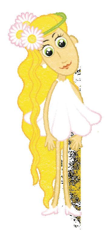 Sedmikrása byla droboučká, s dlouhými blonďatými vlásky. Vlnily se jí až k patám. Měla kulaté, zelené oči a na hlavě nosila věneček ze sedmikráskových kvítků.