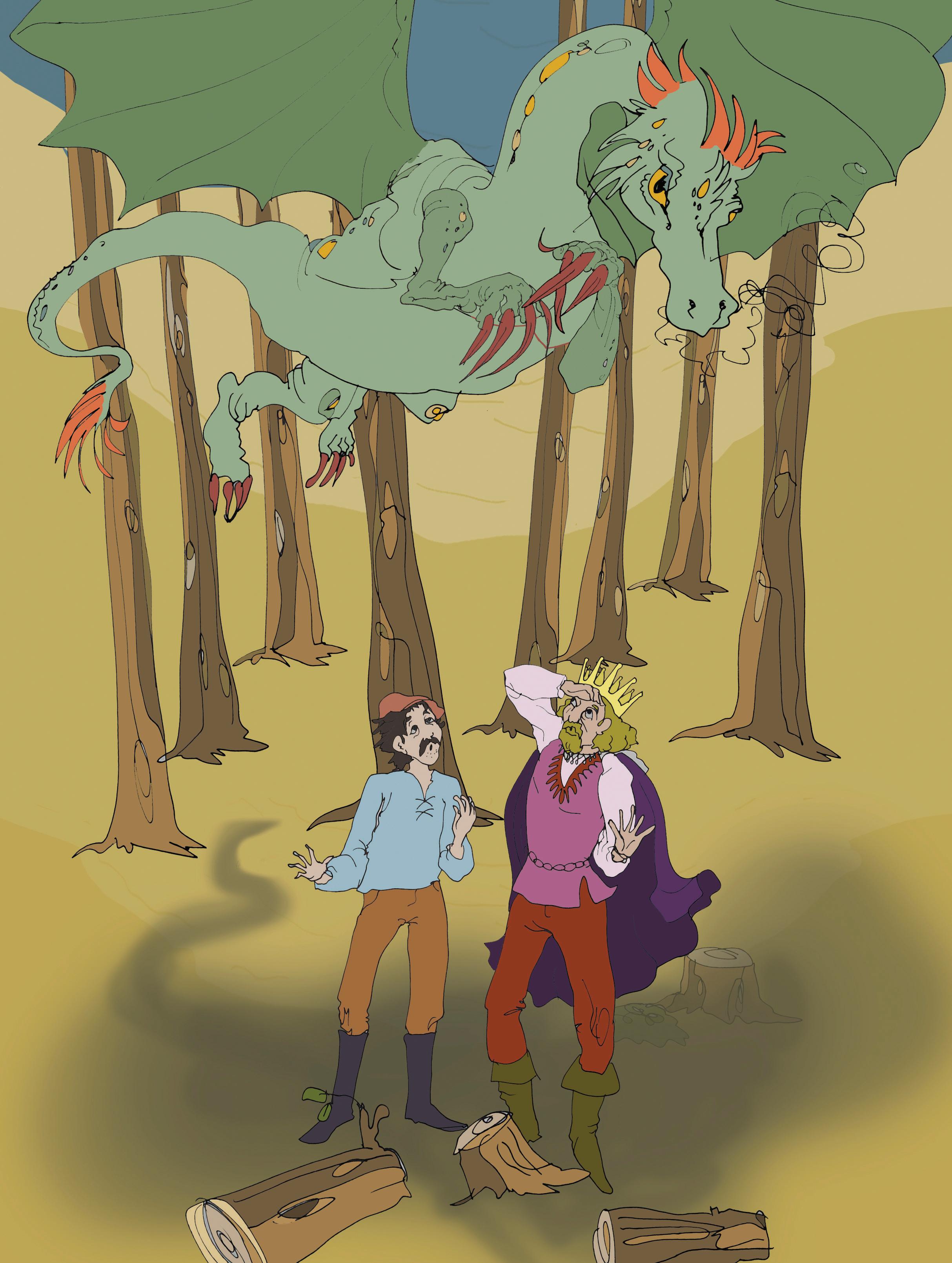 Král přikývl, ale nevěděl, zda se drak směje opravdu, nebo zda je s nimi oběma zle. I uhlíř se trochu přikrčil. Nikdy draka neviděl veselého.