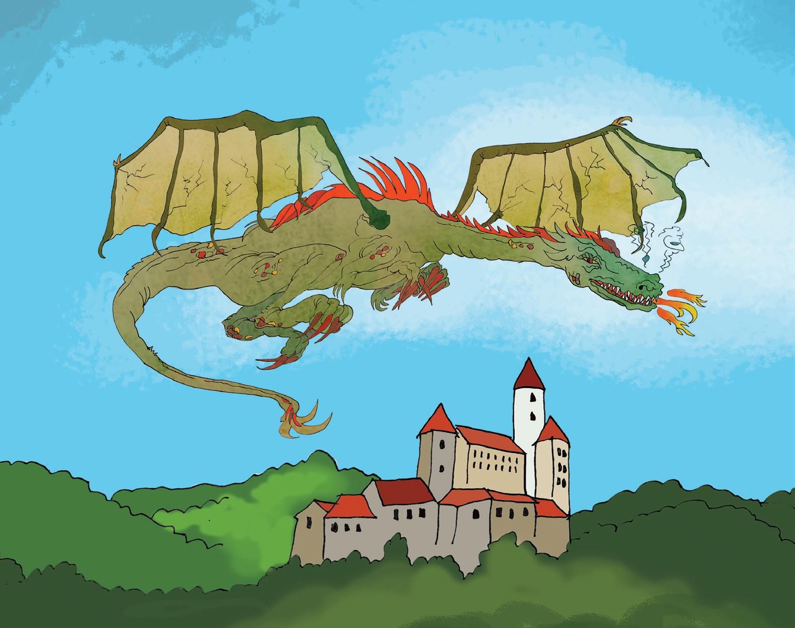 „Ale jestli někdo tvůj příkaz poruší, nebo dokonce ty sám, spálím ten váš hrad a nikoho neušetřím,“ zahrozil drak a z nozder mu výhružně vyšlehl plamen a jiskry se rozlétly kolem dokola.