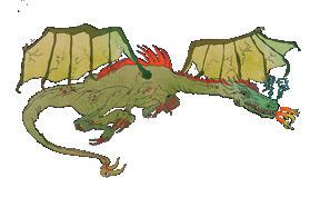 Za ním stál drak a mluvil lidskou řečí. Děsivý drak byl vysoký jak tři muži, na zádech měl složená křídla, že by jimi mohl stromy lámat, ve velké děsivé hlavě