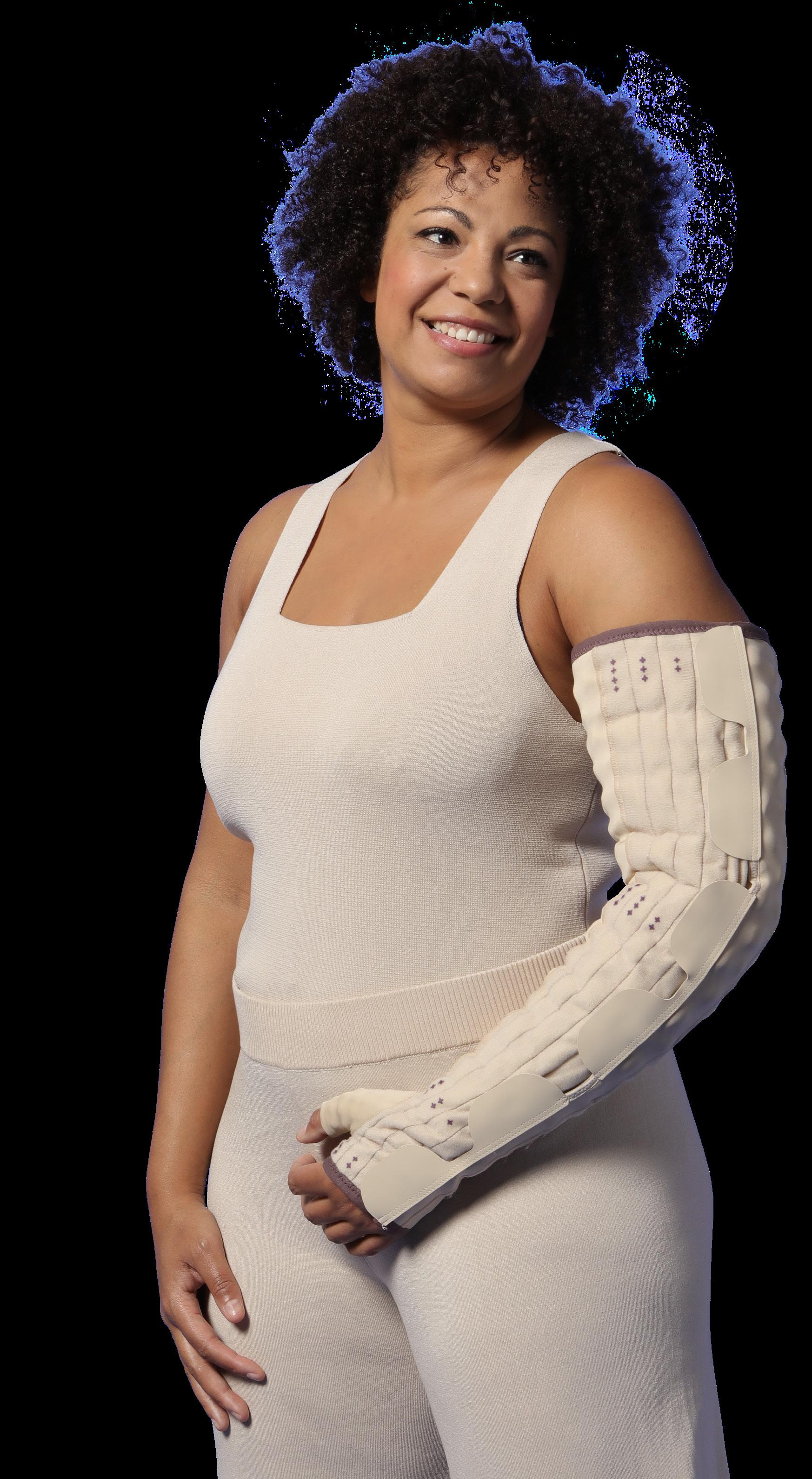 The Technology can be used under a reducing bandage (in its bandage or pad forms), or incorporated into mobilizing garments.