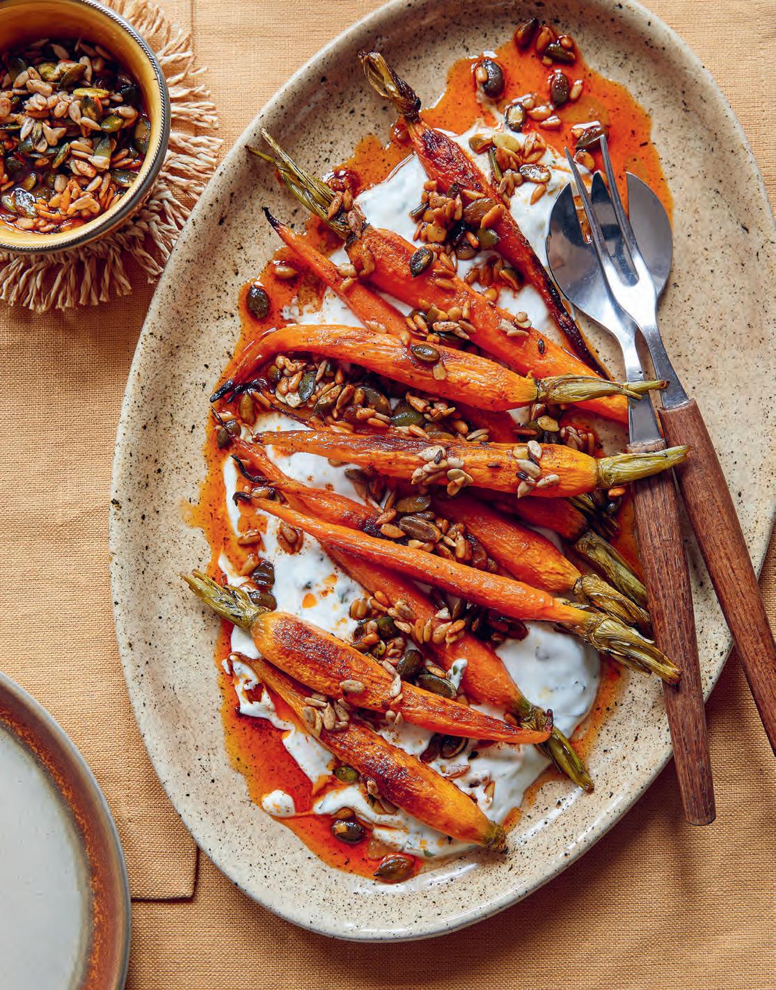 V jednom pokrmu se potkává kontrast bohaté sladkosti pečené mrkve se studeným kyselým jogurtem a svěžestí bylinek, a to je víc, než by člověk čekal od pár obyčejných surovin.