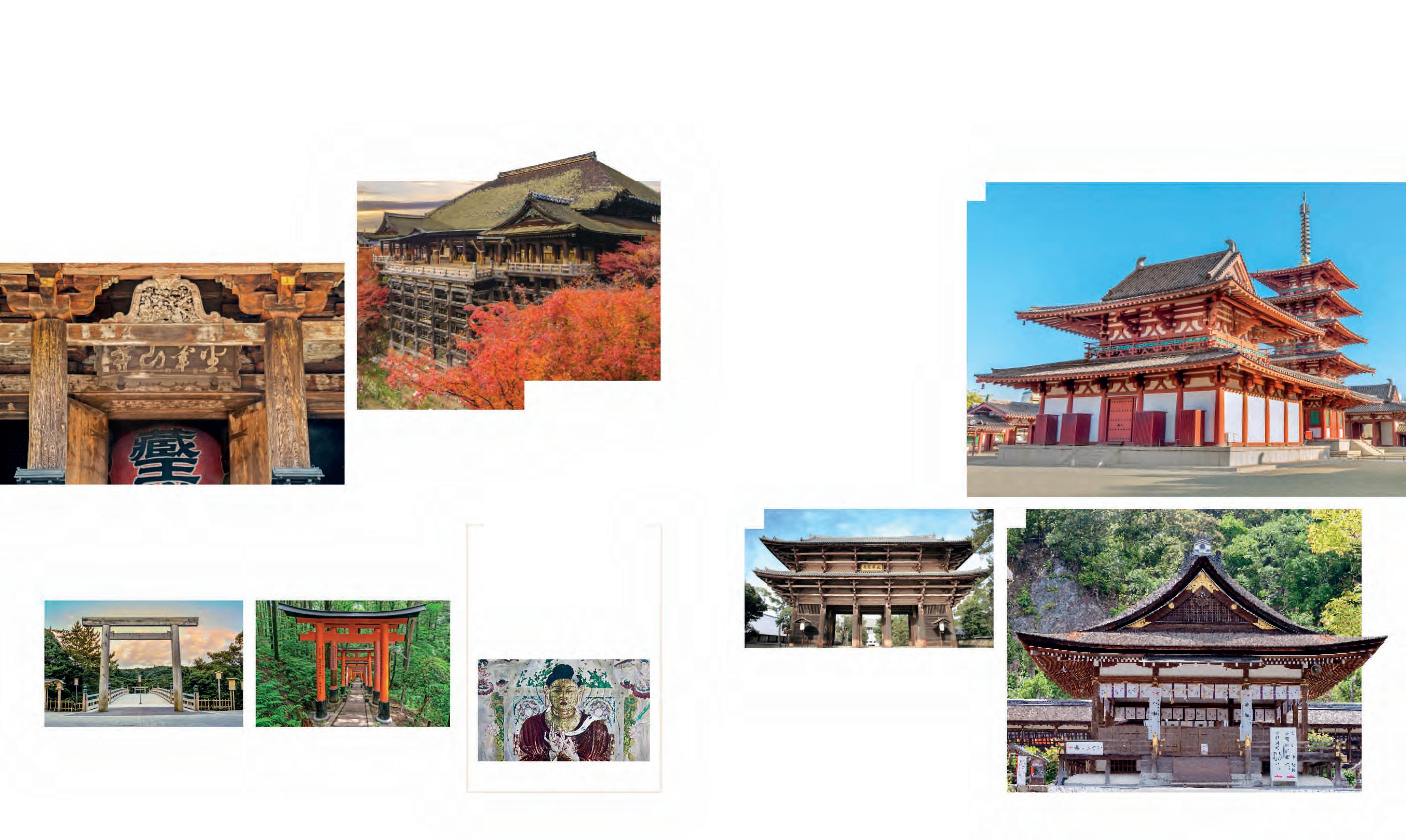 zavedenou kosmologii. V obdobích Asuka (552–645 n. l. , Hakuhó (645–710) a Nara (710–794), která posílila ideál božské královské moci, se stavěly velkolepé buddhistické síně a pagody, včetně Hórjúdži, založené knížetem Šotoku, mecenášem buddhismu. Následovala staletí výstavby a přestavby dřevěných chrámů, při nichž se střetávaly a mísily čínské archetypy s japonskými tradicemi a vznikala řada stylů. Čínské systémy víry a politické ideologie podnítily plánování císařských hlavních měst, nejprve ve Fudžiwaře v 7. století a později v Naře a Kjótu – všechna napodobovala symbolický plán čínského hlavního města Čchang‑an z období Tchang. Tato města se stala ranými centry buddhistické praxe. Naproti tomu buddhistická architektura 8. století zdůrazňovala askezi a snažila se izolovat od městského ruchu. Horské kláštery Enrjakudži a Muródži opustily symetrické uspořádání Hórjúdži a místo toho kopírovaly nerovný reliéf. Skromné fasády jejich dřevěných sálů působily archaickým dojmem. Uprostřed této architektonické syntézy uctívání hor a mnišské praxe vzniklo nové učení šugendó.