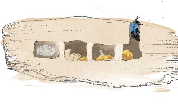 Kopečky tvaru mraveniště na zahradním trávníku označují vstupy do hnízd zemních včel, vyhrabaných samičkami na jaře jako bezpečná místa pro kladení vajíček. Po následující měsíce se vajíčka líhnou a kuklí v bezpečí hnízda a vyčkávají, až budou nejhorší zimy u konce.