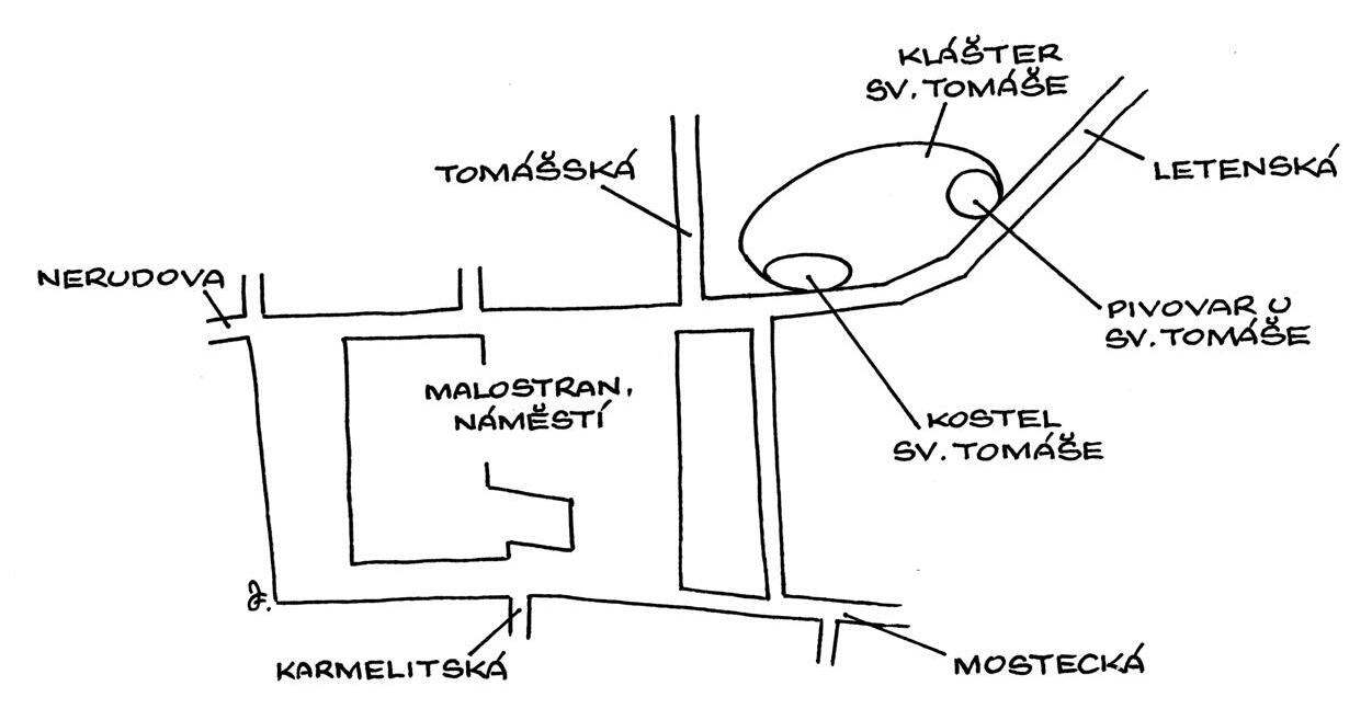 Pivovar kláštera sv. Tomáše se nacházel od roku 1352 vseverní části klášterního pozemku augustiniánů vmalostranské Letenské ulici. Na základě privilegia Karla IV. vařili mniši černé pivo podle svých receptů apouze pro svoji potřebu, ale díky vynikající chuti si na něm brzy pochutnávali také nejen Malostraňáci, ale ipražský arcibiskup asnad ičeští králové. Když roku 1420 husité pivovar vydrancovali, musel si na obnovu počkat až do 16. století. Byl přestavěn aobnovil provoz, což ovšem neviděli rádi ostatní malostranští sládci, pro něž byl nepříjemným konkurentem; dokonce prý počátkem 18. století zabavili celou jednu svatotomášskou zásilku piva. To však nezabránilo