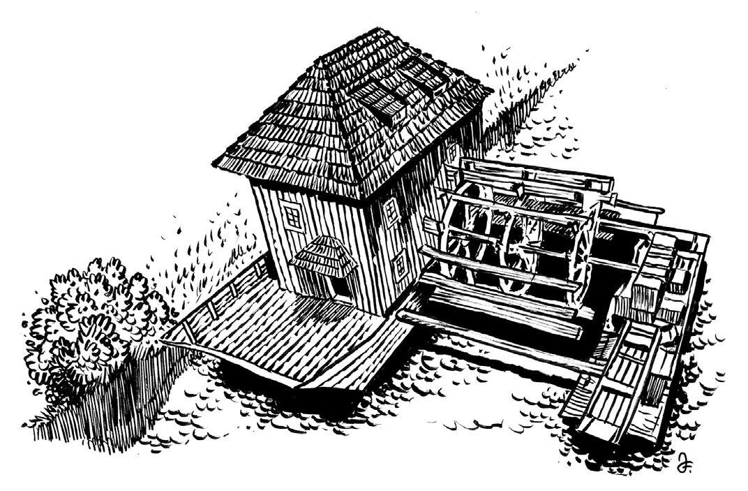 *Mlýny bývaly různé, ale zvlášť technicky zajímavou výjimkou se stal mlýn lodní, zvaný škrtnice. Podle Ondřeje Vítka šlo omlýn, jehož mlýnské kolo (tedy spíš koleso) nesly zobou stran dvě ukotvené lodě, aby voda mohla kolesem otáčet.