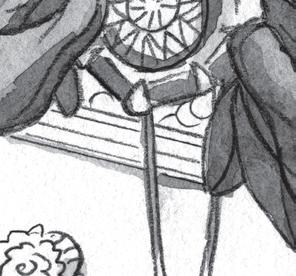 Vnitřek zásuvky pokrýval temně rudý samet a její obsah se ve světle třpytil. Byly tu zlaté a stříbrné prsteny, mohutný zlatý řetěz a perlový náhrdelník. Překrásné zdobené spony vytvarované jako nejrůznější zvířata a vykládané drahokamy. Na dně ležely poházené mince. Uprostřed na jakémsi podstavci ležela veliká zlatá brož s ohromným diamantem.