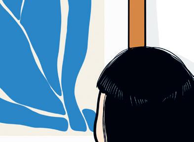 kapesníků. Jeden z nich byl povytažený, jako výzva nebo připomínka, že se má použít. Stěny lemovaly bílé police z IKEA a na nich stály úhledně vyskládané knihy o psychologii a velká zarámovaná reprodukce obrazu od Matisse.
