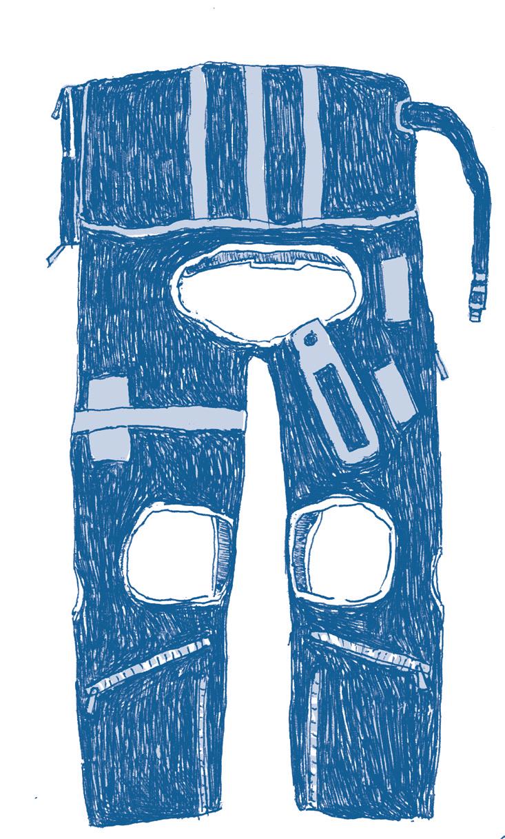 Začneme nejdřív tím zbytkem. Od pasu dolů si pilot oblékne tzv. anti-g přetlakové kalhoty, které slouží k tomu, aby se při ostřejších manévrech člověku nehromadila krev v dolních partiích, tedy zejména v nohách. Kalhoty jsou totiž nafukovací a dají se spojit s letadlem. Při nárůstu přetížení, tzv. G, se automaticky začnou nafukovat a stlačovat břicho a nohy. Zabraňují tak nežádoucímu přesunu krve a pomáhají předejít mdlobám při náročných manévrech. Kromě toho mají kalhoty i několik kapes. Tam se dávají různé drobné předměty, které by pilot mohl během letu potřebovat, ale hlavně se dají využít pro uschování různého vybavení – opět pro případ nouzového přistání na padáku. Najdete v nich například lékárničku.