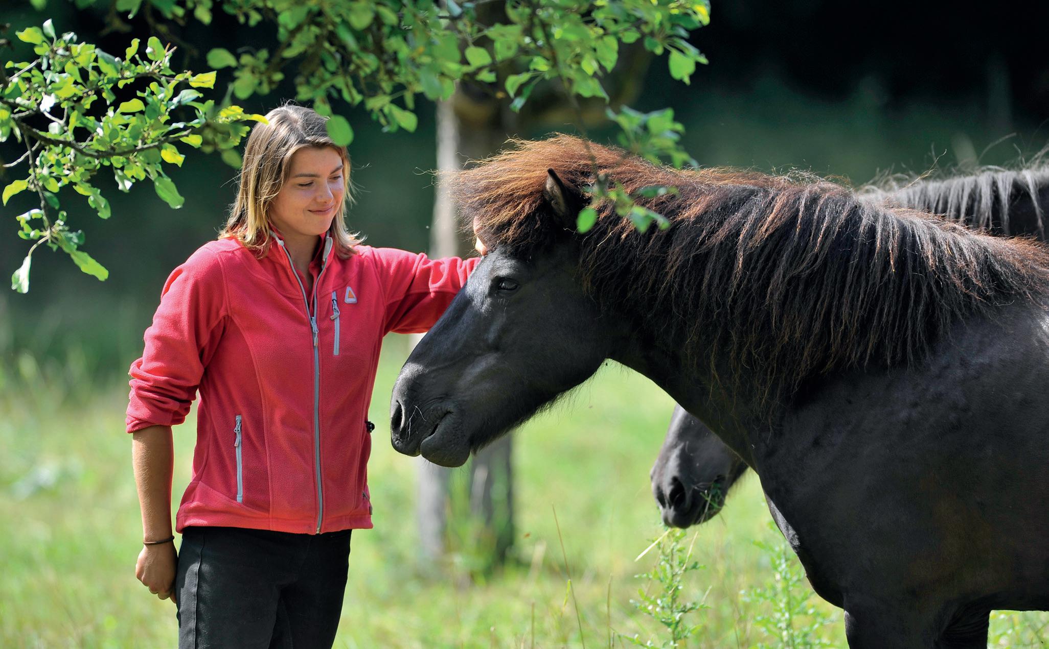 Pouhé pomyšlení na to, že ještě „musíte“ do stáje, protože je potřeba koně vypohybovat, je pro vás jen dalším břemenem. Pak zajdete za roh stáje a uslyšíte hlasité, důvěrné zařehtání. Váš kůň tam stojí ve výběhu s našpicovanýma ušima a netrpělivě hrabe. Voláte: „Hej, ty blázne, nech toho!“, ale přitom se usmíváte. A pak vám do obličeje foukne horký, po ovsu vonící dech a láskyplně zabrblá. Svět je najednou zase v pořádku.