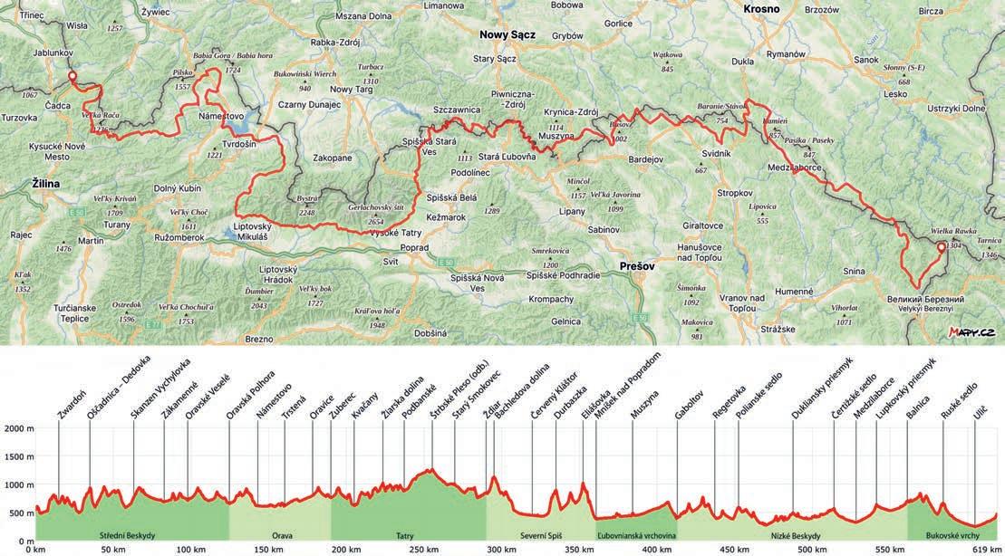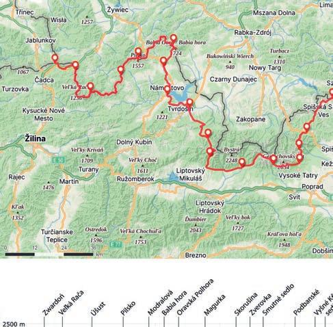 Trasa z velké části sleduje státní hranici Slovenska a Polska.