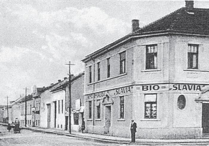 Kino Slavia, stav k roku 1925. Budova bývalého kina Slavia, současný stav.