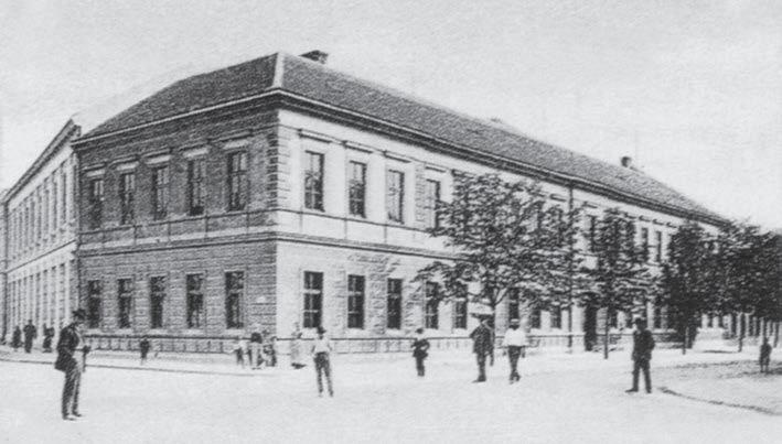 Budova chlapecké měšťanské školy v Brně-Židenicích na ulici Táborská 185, stav k roku 1917.