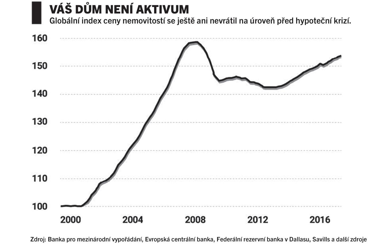V roce 2008 se trh s nemovitostmi zhroutil. S výjimkou několika málo míst, jako je San Francisco, New York a Honolulu, kde už ceny domů vzrostly, se na většině míst na celém světě ceny nemovitostí od té doby ještě nezotavily, jak dokládá výše uvedený graf, založený na údajích Mezinárodního měnového fondu.