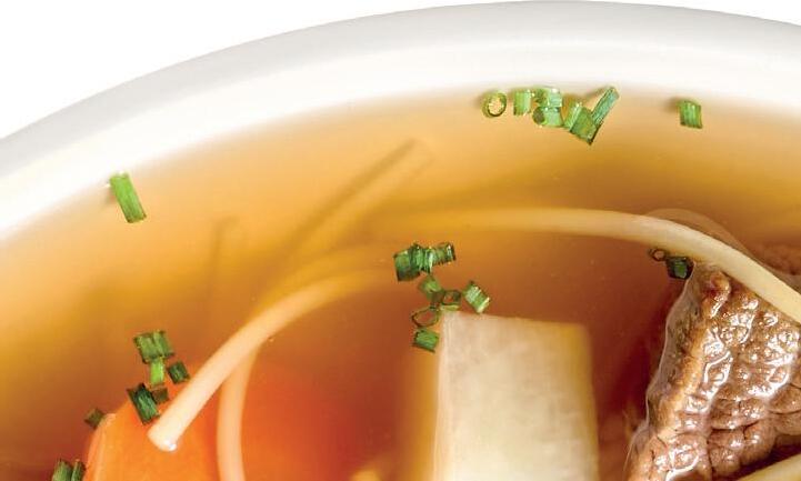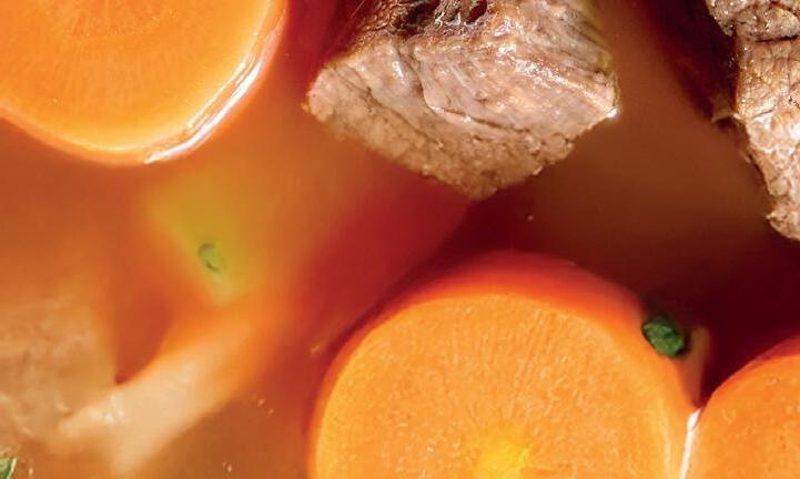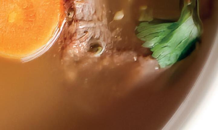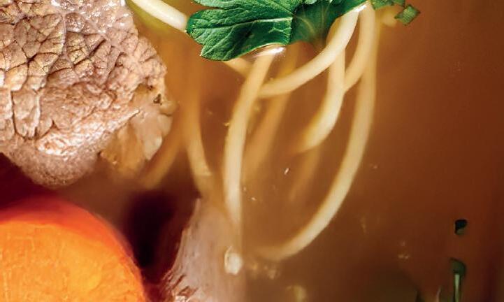 Dvanáct hodin tažený silný vývar z opečených kostí, masa a zeleniny, dochucený pouze kořením