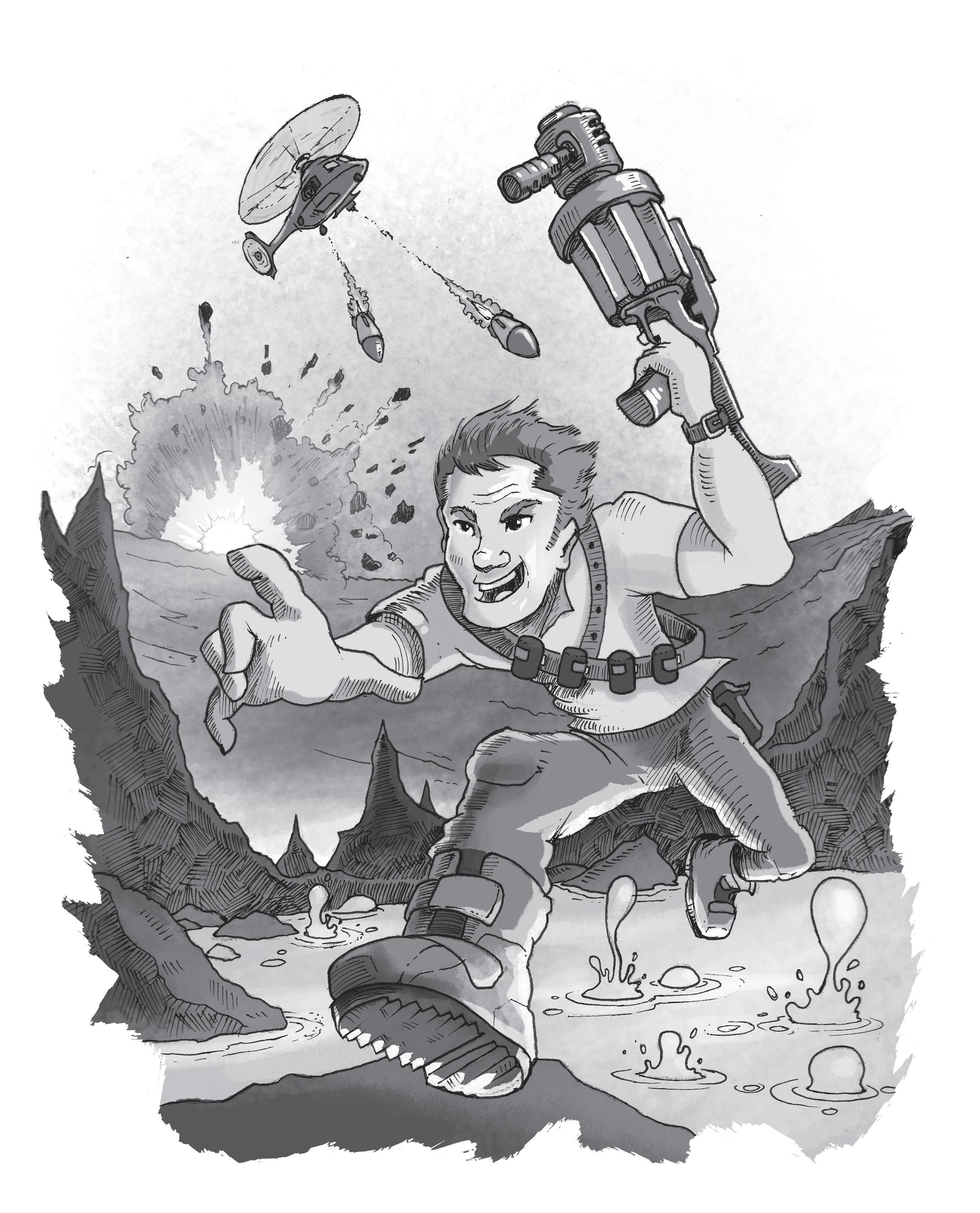 Granát nárazem do stropu vybuchne, což před vlkem způsobí zával. Jednoho máš z krku, zbývá poslední! Zatímco tě liána vláčí po zemi, nabíjíš druhý granát. Konečně se ti podaří naládovat a namíříš na liánu. Jenže těsně předtím, než stačíš zmáčknout spoušť, ti vytrhne zbraň z ruky druhý vlk a vzápětí tě chytí za triko. Liána se tě snaží odtáhnout, ale vlk se nedá zahanbit. V téhle přetahované bere vítěz všechno a ty jsi pouhé lano.