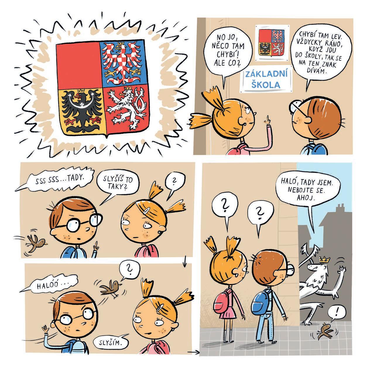 Na procházce knihou vás bude provázet lev. Ane jen tak ledajaký. Je to český bílý dvouocasý lev! Kde se tu vzal, zjistíte už za chvilku. Stejně jako se to dozvěděl kluk Tomáš a holka Eliška. Takže můžete být úplně klidní, protože se třemi průvodci se určitě neztratíte!