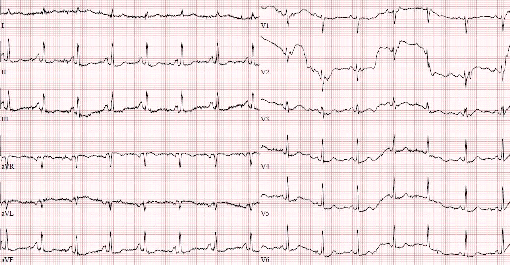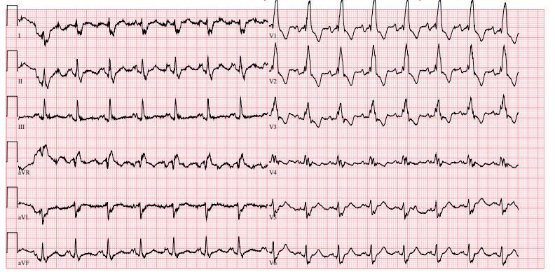 • vysoká nebo nízká voltáž, případně prodloužení vlny T může vznikat v důsledku iontové dysbalance nebo intoxikace léky, např. antiarytmiky