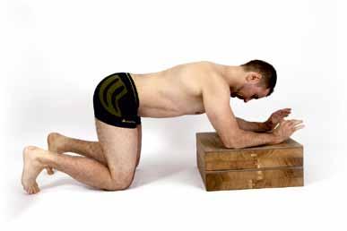 ZAUJMUTÍ CVIČEBNÍ POLOHY: Zaujmeme pozici „na čtyřech“ s oporou o kolena a předloktí. Předloktí jsou téměř rovnoběžná, v pozici mírně přesahující vzdálenost ramen.