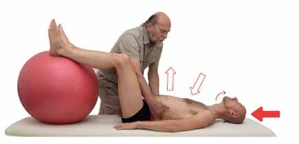 spontánního protažení šíje. Naopak v dolní části trupu vnímáme zpevnění pánevního dna, podbřišku a boků. V aktivaci chvilku vydržíme a snažíme se plynule dýchat. Vyvarujeme se zadržování dechu. Cvičení můžeme zdynamizovat rytmickým zesilováním a odlehčováním opory nohou o podložku s periodou cca 3–5 vteřin.