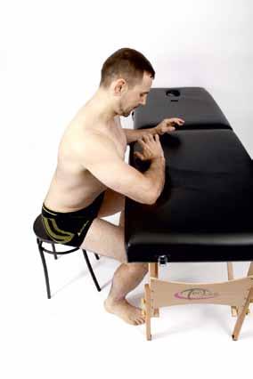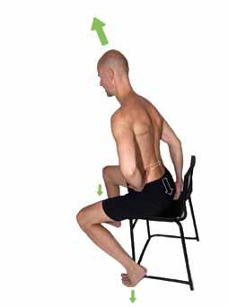 ZAUJMUTÍ CVIČEBNÍ POLOHY: Zaujmeme sed na židli s tužší bederní opěrkou nebo válečkem za zády. Zadek zasuneme co nejvíce dozadu pod opěrku, která je v oblasti beder nad pánví. Dlaně opřeme o stehna co nejblíže třísel, prsty včetně palce směřují dovnitř.