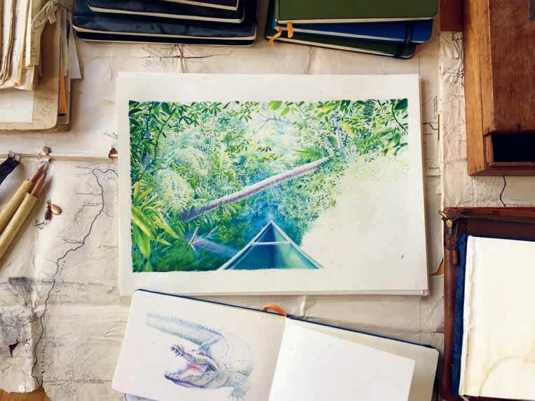 Opatrně jsme listo vali křehkými stránkami a postupně odkrývali pokladnici znalostí, náčrtů a barevných ilustrací zobrazujících dobrodružství z celého světa. Pouzdro i jeho obsah jsme v pořádku přivezli s sebou domů, kde jsme je po dva roky pečlivě restaurovali a společně upravovali, až vznikla tato kniha – Ztracená kniha dobrodružství